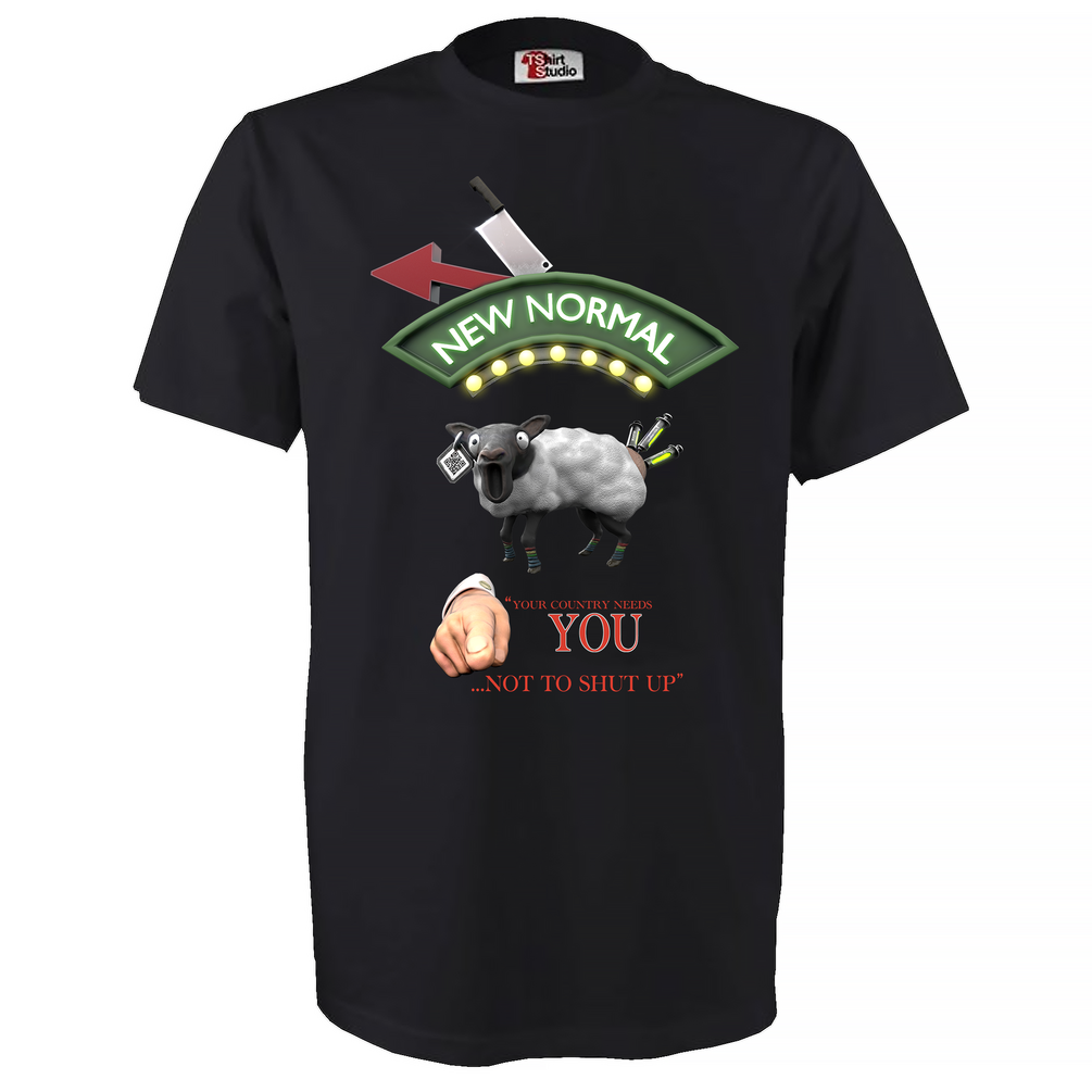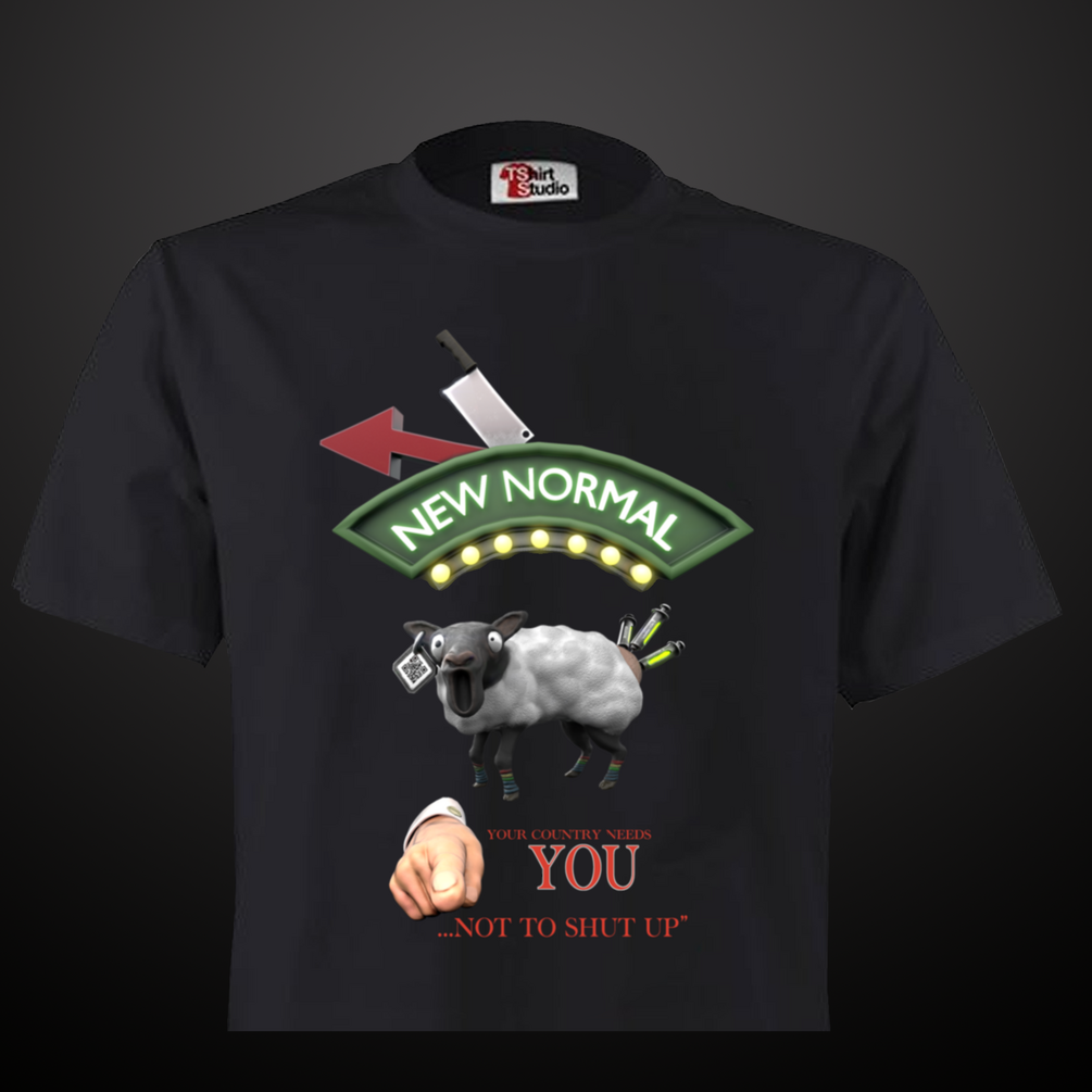 A premium men's T-shirt with a New World Order Vax Sheep design. Make sure you choose your size and preferred postage speed by selecting the right product version.